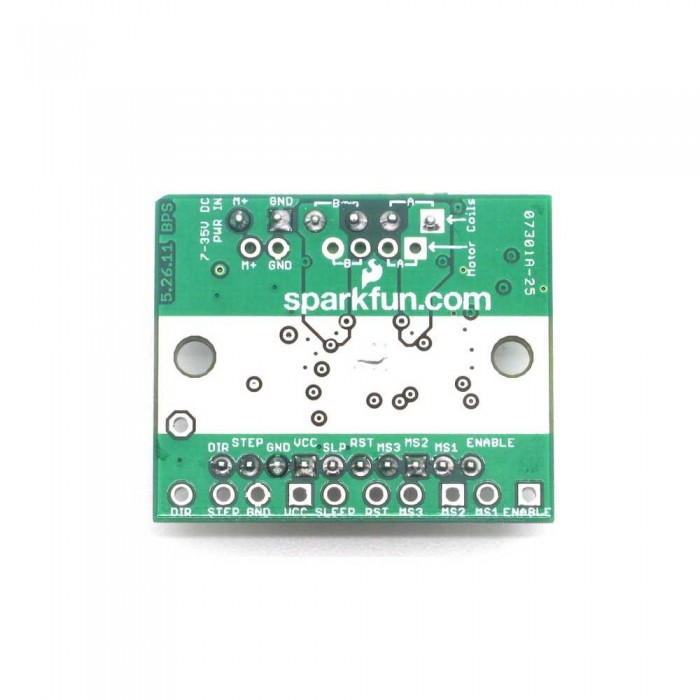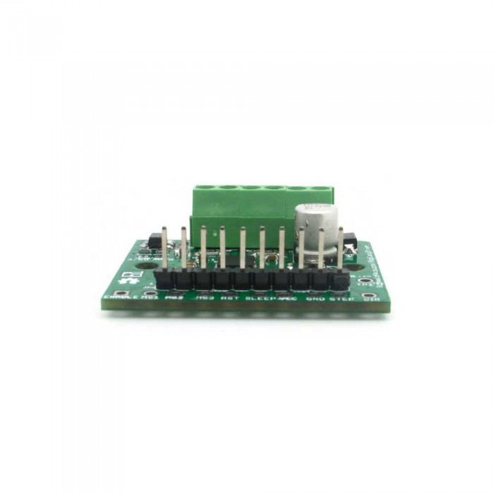 Each BigEasyDriver can drive up to about 2A per phase of a bi-polar stepper motor. It is a chopper microstepping driver which defaults to 16 step microstepping mode. It can take a maximum motor drive voltage of around 35V, and includes on-board 5V/3.3V regulation, so only one supply is necessary. Although this board should be able to run most systems without active cooling, a heatsink is recommended for loads approaching 2A/phase. You can find the recommended heatsink in the related items below.