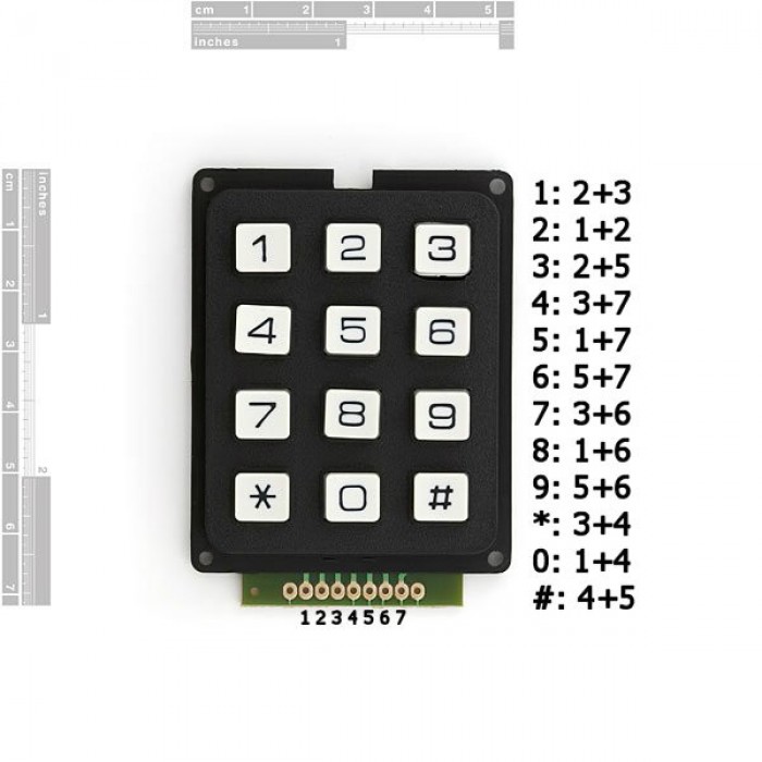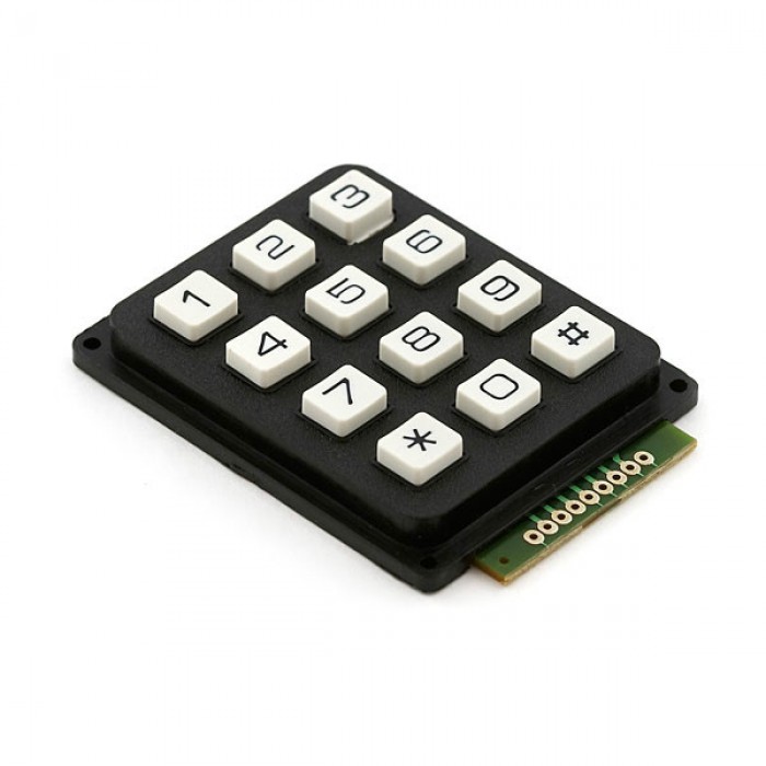 Un clavier de 12 bouton de base pour l'entrée utilisateur. Les boutons sont configurés dans un format de matrice. Cela permet au microcontrôleur de balayager les 7 broches de sortie pour voir qui des 12 boutons est pressé.