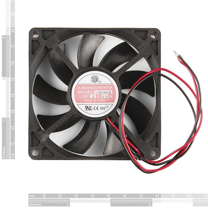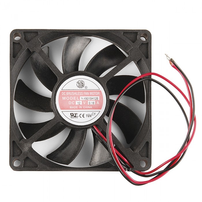 This is a fairly large, 80x80x15mm fan. The fan has a DC brushless motor, with an operating voltage of 12V, and is rated at 180mA. Keeping the temperature down in your project can often be a necessity, and this fan can definitely help.