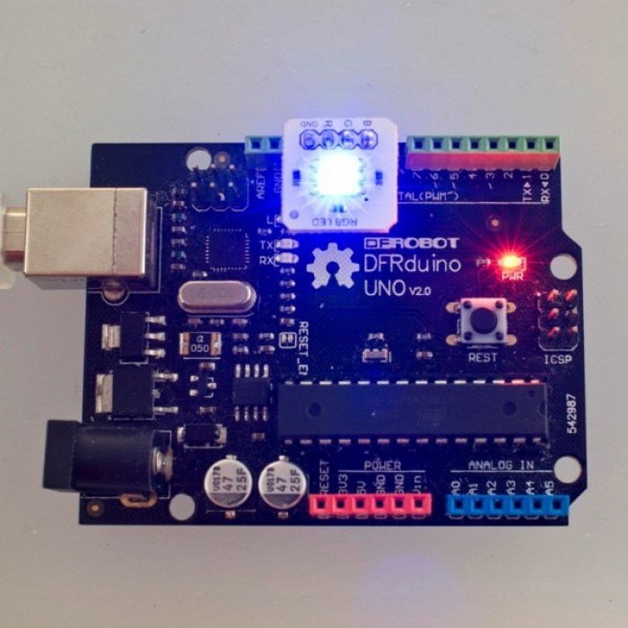 This small size breakout is programmable full-color RGB LED for hobbyists, industrial designers, prototypers, and experimenters. It is designed to allow the easy addition of dynamic indicators, displays, and lighting to existing or new projects. Controlled by PWM channels can be available in soft red, orange, yellow, green, blue and white...The high quality LED has wide viewing angle and optimized light coupling by inter reflector.