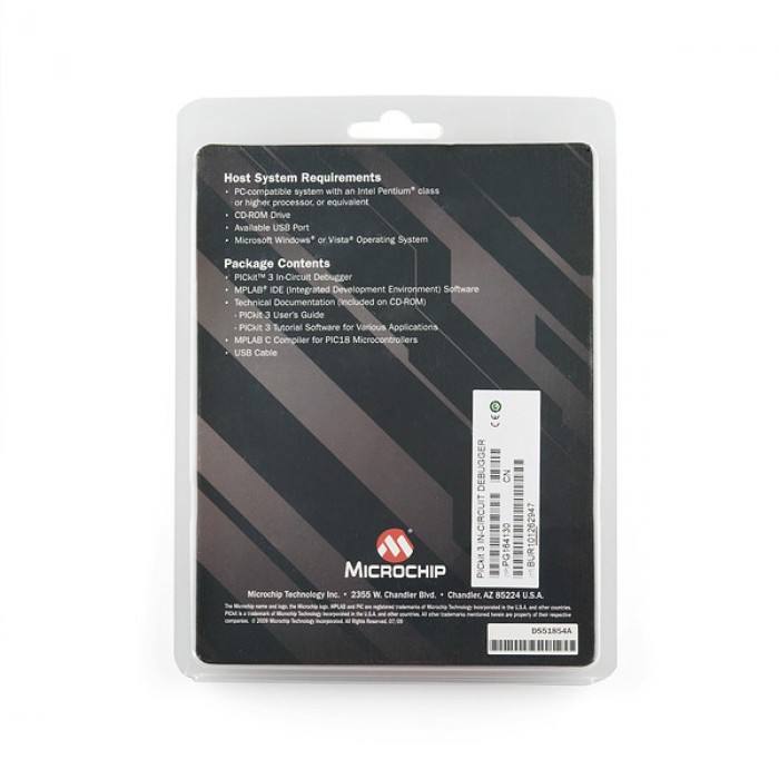 C'est la nouvelle PICkit 3 de Microchip. Si vous voulez un programmeur officiel de Microchip, ça y est! Le PICkit 3 permet le débogage et la programmation des PIC et dsPIC microcontrôleurs l'aide de l'interface utilisateur graphique puissant du MPLAB environnement de développement intégré (IDE). Le MPLAB PICkit 3 est connecté à un PC via une interface USB pleine vitesse et peut être connecté à la cible via un débogage de Microchip (RJ-11) connecteur (compatible avec MPLAB ICD 2/3 et MPLAB REAL ICE). Le connecteur utilise deux dispositif de broches d'E / S et la ligne de réinitialisation à la mise en œuvre de débogage en circuit et en circuit de programmation de série. câble miniUSB inclus.