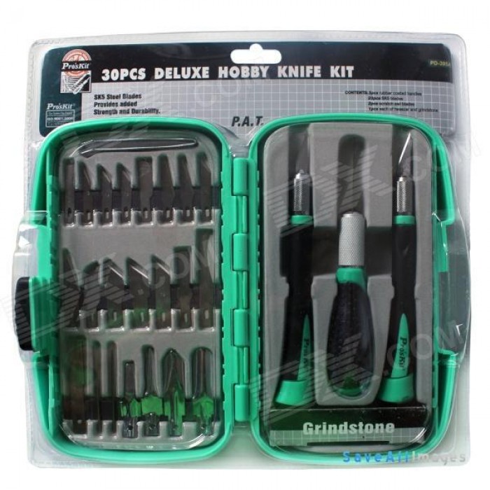 | Liste d'emballage | 3 x TPR + PP bicolore poignées antidérapantes 19 lames de sculpture x SK5 (3PCS à poignée) 2 x lames Poinçon 4 x pales Shovel 1 x Pince à épiler 1 x Grindstone 1 x bicolore cas TPR + PP (205 x 132 x 45mm) |