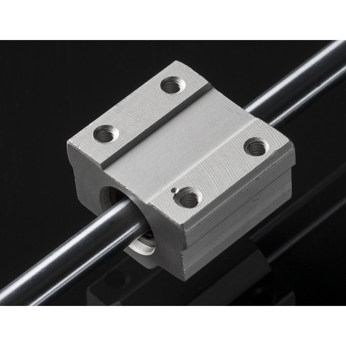 Make your robot or CNC move on rails super fast with a linear bearing platform. The platform is 34mm x 30mm and has four holes tapped for M4 machine screws so you can attach pretty much anything you want. All you need to get started is two 8mm supports and a precision-ground 8mm rod. Often times, CNC projects will have two of these on opposite sides to support a larger platform.