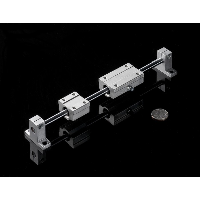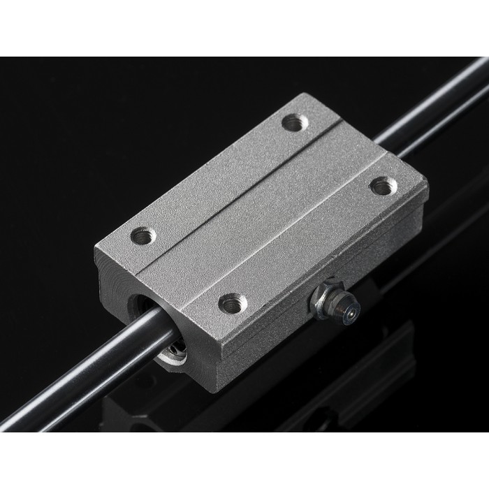Make your robot or CNC move on rails super fast with a linear bearing platform. The platform is 34mm x 58mm and has four holes tapped for M4 machine screws so you can attach pretty much anything you want. All you need to get started is two 8mm supports and a precision-ground 8mm rod. Often times, CNC projects will have two of these on opposite sides to support a larger platform.