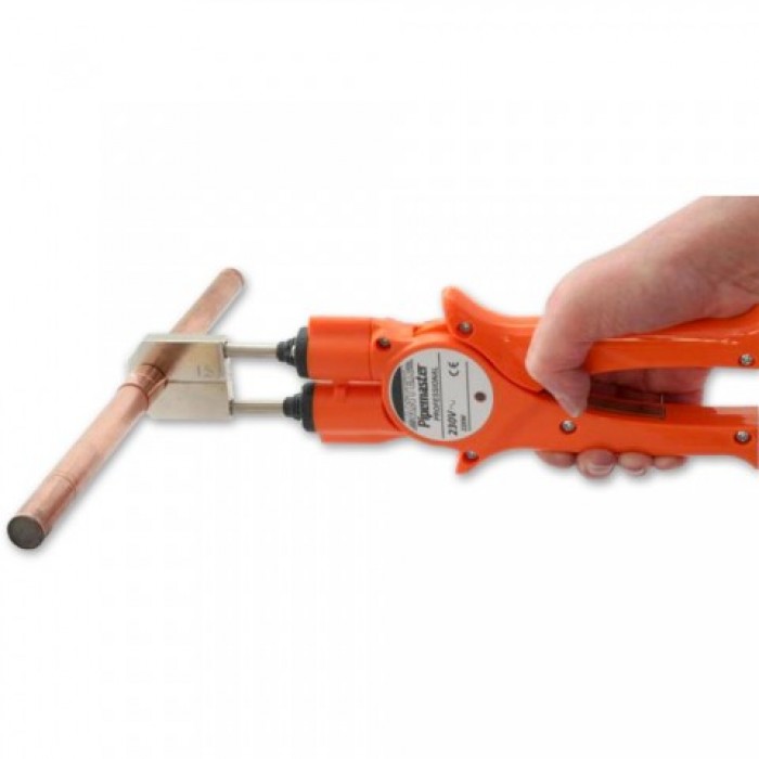 L'outil de soudure PRO Pipemaster est spécialement conçu pour une utilisation sur les anneaux de soudure intégraux ou des raccords capillaires d'alimentation d'extrémité sur les tuyaux de cuivre domestiques où l'utilisation d'une flamme nue est inacceptable ou indésirable. Avec un temps de réchauffement jusqu'à deux minutes, après quoi il est prêt pour le travail continu, il est le candidat idéal pour remplacer un chalumeau traditionnel. Deux éléments de forte puissance sont câblés en série donnant 220W au total. Il suffit d'appliquer le PRO Pipemaster aux côtés du raccord à souder et le joint est fait en quelques secondes. L'appareil est fourni avec 15mm têtes amovibles et 22mm têtes sont disponibles séparément.