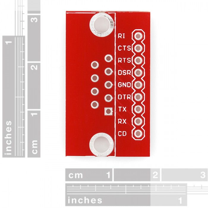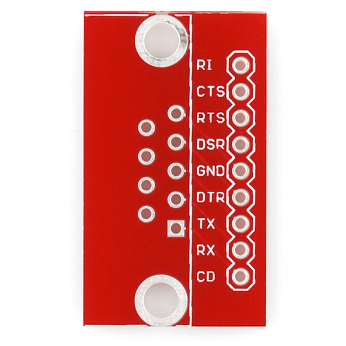 A very simple breakout board for the DB9 connector. Takes the 9 incoming signals and puts them into a breadboard friendly single row of 0.1" pins.