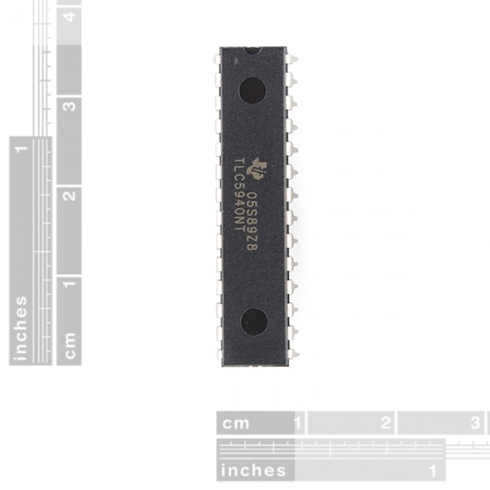 Le TLC5940 est une unité de découpage de 16 canaux avec contrôle du cycle de service de 12 bits (0 à 4095), 6 bits de contrôle courant limite (0 - 63 pour), et une interface série connectable en chaîne marguerite. Il est très pratique pour augmenter le nombre de sorties PWM disponible.