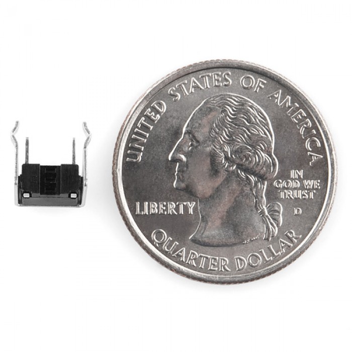 This right-angle tactile switch has a great 'click' to it. Also, because it's a through-hole design it's very sturdy. Mount it on the edge of your board for easy access. These are rated for 12VDC at 50mA.