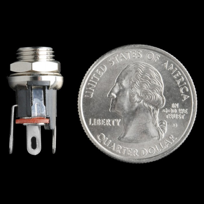 This is a great DC power jack/connector for projects in an enclosure. This is a common barrel-type power jack for DC wall supplies, in a panel-mount form factor. These are compatible with our DC wall supplies and have a 5mm jack, with a 2.1mm center pole diameter. Simply drill the proper size hole in your enclosure, slide the jack through and secure it with a nut. Panel mount jacks are also useful in preventing mechanical stress from hanging power cables damaging your board.