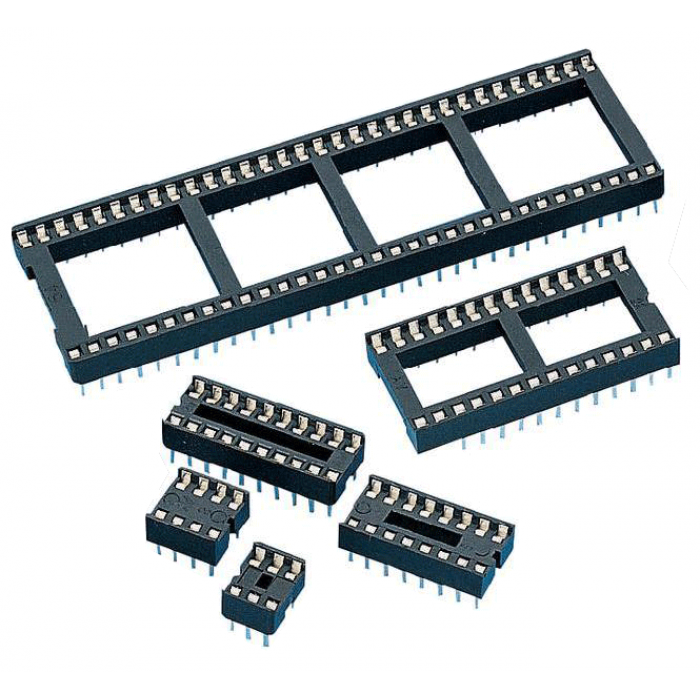 Dip sockets for all your prototyping needs. If you've ever had to de-solder a dip part from a circuit board, you know how valuable these are! Number of pins include: 8, 14, 16, 18, 28, and 40; 300 Et 600mil socket.