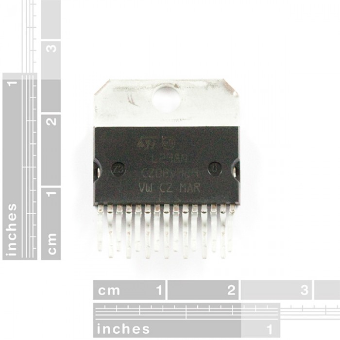 Le LN298 est une haute tension, courant fort, double commande de moteur à pont complet conçu pour accepter des niveaux logiques TTL standard et piloter des charges inductives telles que des relais, des solénoïdes, DC et moteurs pas à pas.