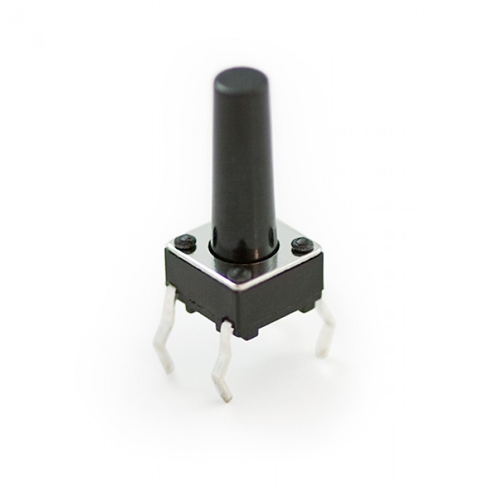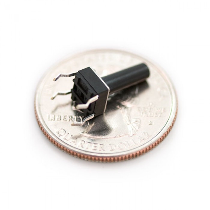 Miniature Single Pull Single Throw switches. These are high quality Omron type B3F momentary on switches. This switch has a very large 10mm tall button. Perfect as an embedded switch behind an enclosure wall. Rated up to 50mA.
