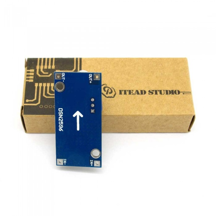 C'est un module LM2596 convertisseur DC-DC adaptaeur de puissance à haute précision avec un potentiomètre, capable de conduire une charge jusqu'à 3A avec une grande efficacité, qui peut travailler avec tous les arduino, d'autres cartes mères et des modules de base. Lorsque le courant de sortie continue supérieure à 2,5 (soit une puissance supérieure à 10W), s'il vous plaît ajouter un dissipateur de chaleur sur elle.