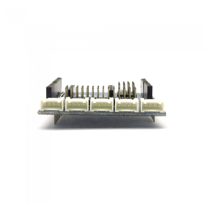 Arduino capteur shield est spécialement conçu pour Arduino de se connecter à différents types de modules de briques électroniques. La dernière version de ce shield peut soutenir briques électroniques avec 3 fils et communication à 4 fils , et il est compatible avec les deux interfaces traditionnelles de shields électroniques sur le marché : 2,0 mm à 4 broches Interface bosquet et une interface à 3 broches 2,54 mm . En outre, le shield est équipé d'une interface XBee pour les utilisateurs de se connecter avec différents modules sans fil externes qui sont compatibles avec l'interface du module XBee . Lorsque vous travaillez avec BTBee Pro, il peut être utilisé comme une planche.