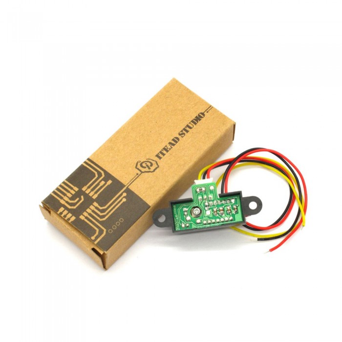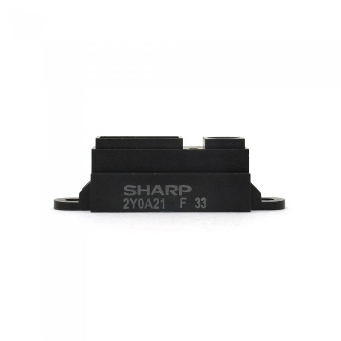 SHARP GP2Y0A21YK0F is a distance measuring sensor unit, composed of an integrated combination of PSD (position sensitive detector) , IRED (infrared emitting diode) and signal processing circuit. The variety of the reflectivity of the object, the environmental temperature and the operating duration are not influenced easily to the distance detection because of adopting the triangulation method. This device outputs the voltage corresponding to the detection distance. So this sensor can also be used as a proximity sensor.