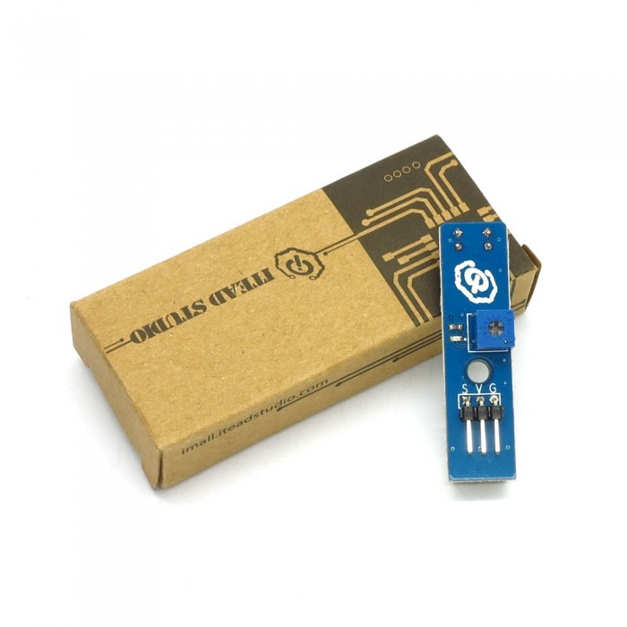 The threshold voltage is a voltage for comparison. When the sensor encounters obstacles, and the induced voltage is above the threshold, it will digitally output a high level (3.3V or 5V); when there are no obstacles, and the induced voltage is below the threshold, it will digitally output a low level (0V). In this way, the digital pin can be used directly to see if the sensor encounters obstacles or not. The threshold voltage can be regulated by simply twisting the potentiometer which is shown in the following diagram, and it increases by rotating to left side and decreases by rotating to right side