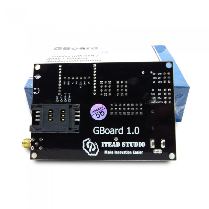 Gboard peut être utilisé comme un transfert de données GSM / GPRS ou plate-forme de développement du projet de communication sans fil. Gboard soutien large gamme d'alimentation et Micro SD pour le stockage de masse. Il ya quelques 3 pin électronique brique / brique capteur Interface évasion à bord, il offre un moyen facile pour un prototypage rapide. Le conseil exige FTDI carte de base pour télécharger les codes, vous pouvez utiliser les modules usb-ftdi pour le faire. Gboard peut être alimenté par un mini USB ou Le conneteur puissance.